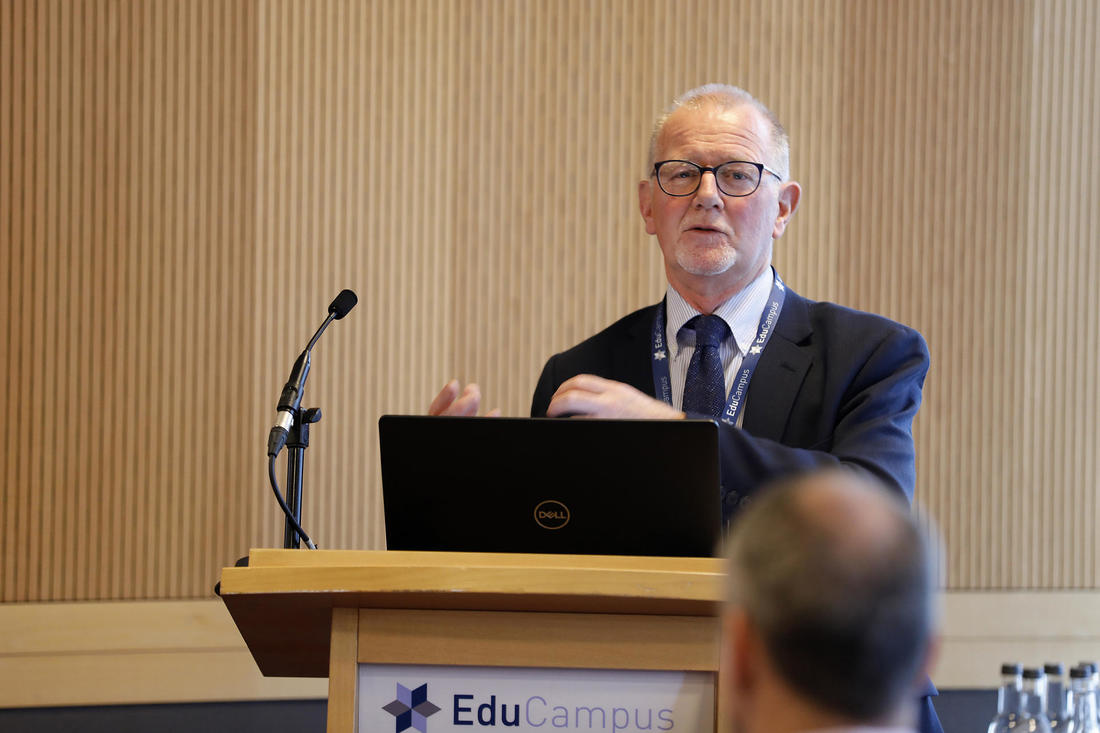 Paddy Naughton presented an overview of EduCampus and showed how they have been assiduous in setting up an agile procurement process for the higher education sector, informed by individuals from the sector. In the past, software systems were seen as an enabler, now they are so complex they cannot be peripheral; instead, they must be central and strategically supported. Furthermore, digital systems offer potential inherent collaborative support for transformation in the HE sector.